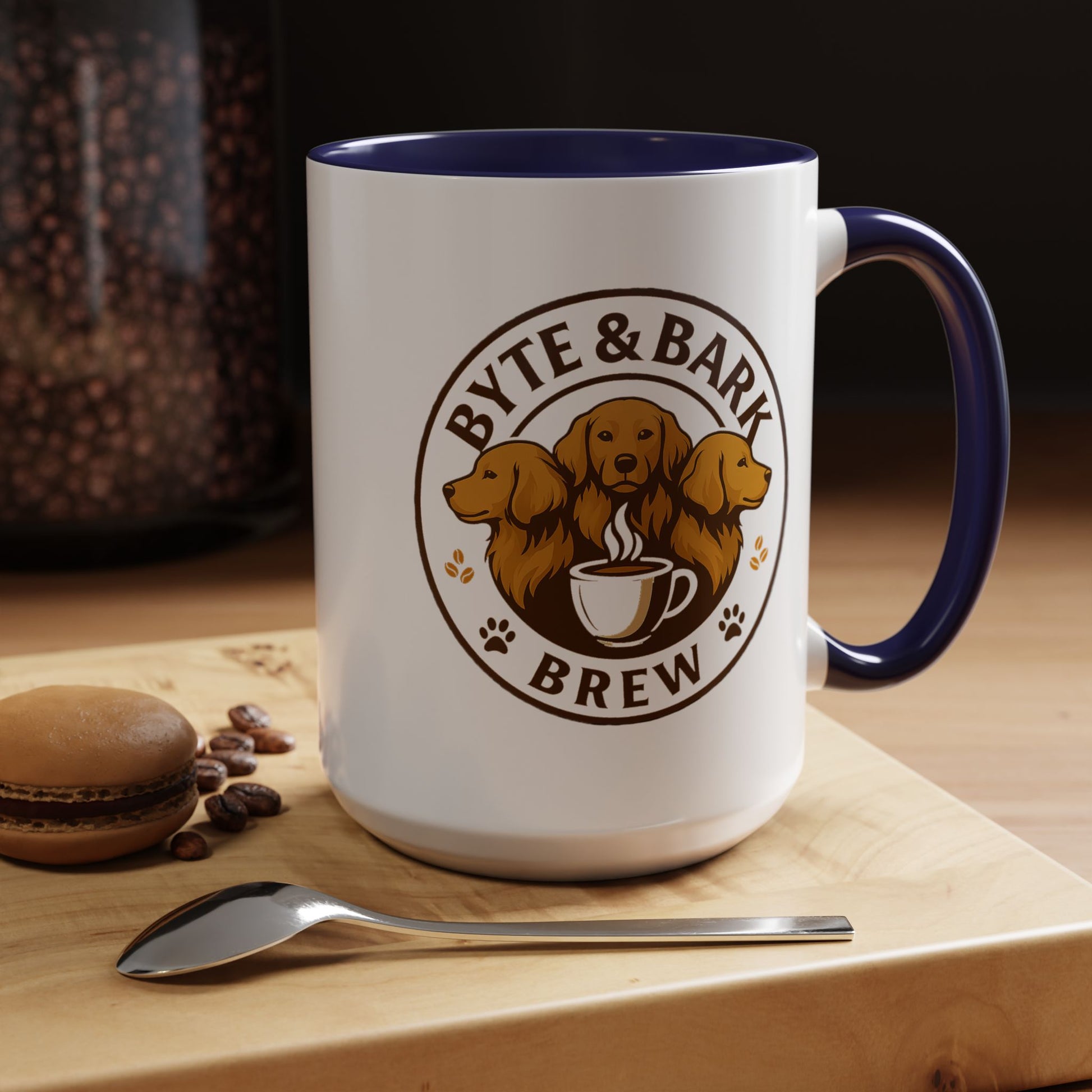 The Byte & Bark Brew Coffee Mug features vibrant designs that celebrate your love for dogs and great coffee. With a glossy finish and comfortable C-shaped handle, it's the perfect companion for your morning brew.